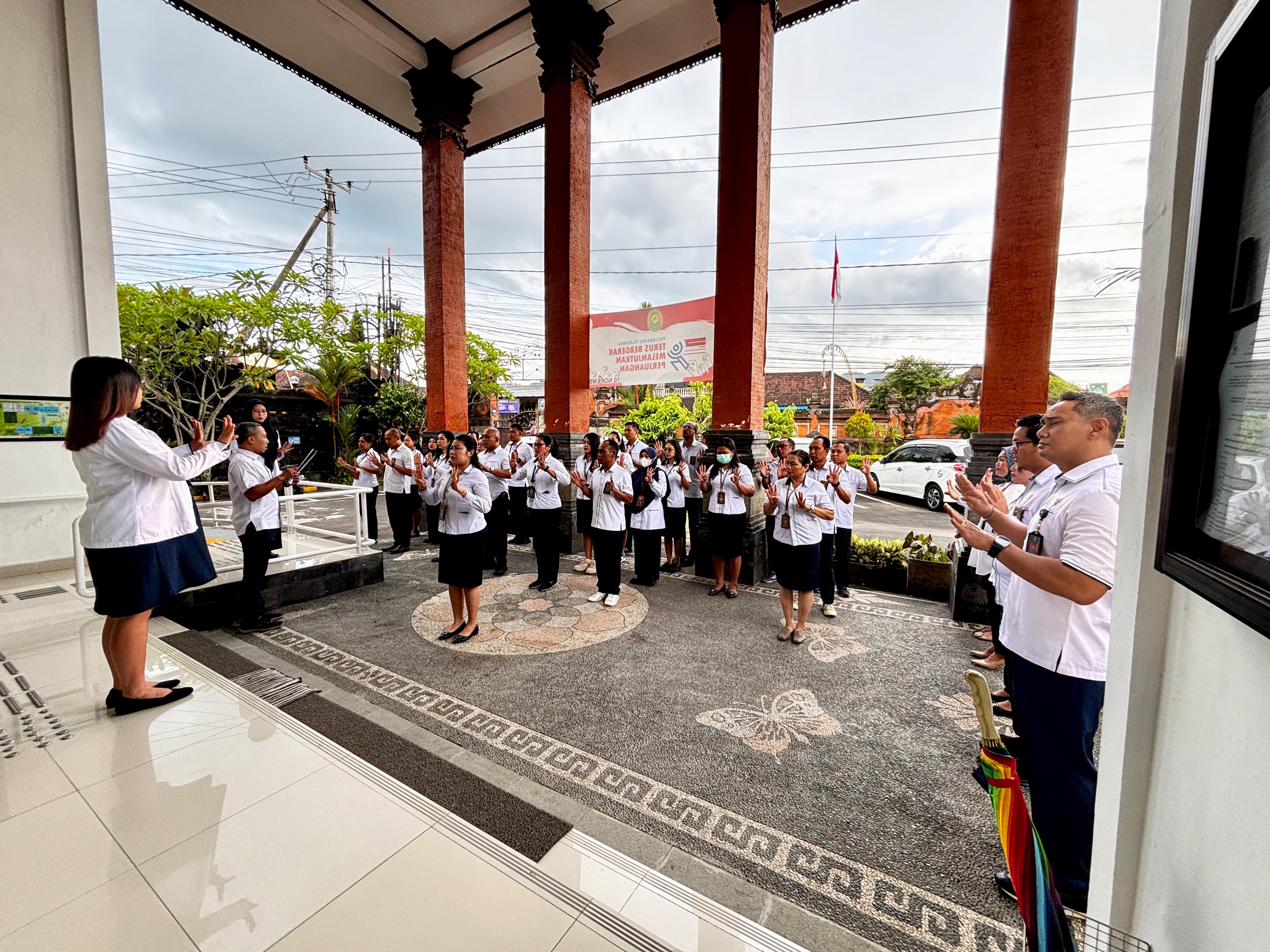 Bertempat di halaman kantor Pengadilan Negeri Semarapura telah dilaksanakan Apel Pagi, sebagai Pembina Apel adalah Hakim Pengadilan Negeri Semarapura Ibu Putu Mas Ayu Cendana Wangi, S.H.,M.H., sebagai Petugas Apel dari bagian Kepaniteraan Hukum, apel diikuti oleh seluruh Hakim dan Aparatur Pengadilan Negeri Semarapura. Dalam amanatnya pembina apel menyampaikan agar tetap bekerja sesuai SOP, menjaga disiplin, mematuhi PERMA Nomor 7,8,9 Tahun 2016, serta selalu menerapkan Delapan Nilai Utama Mahkamah Agung RI, dan tetap berpedoman kepada Core Value ASN BERAKHLAK.