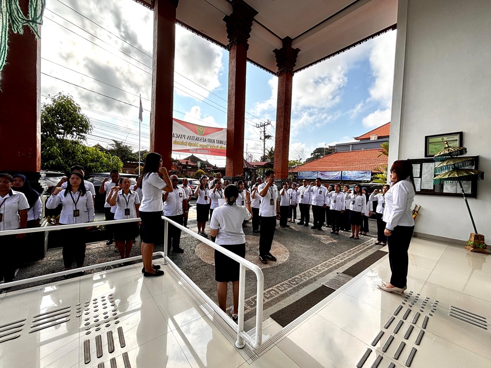 Bertempat di halaman kantor Pengadilan Negeri Semarapura telah dilaksanakan Apel Pagi, sebagai Pembina Apel adalah Sekretaris Pengadilan Negeri Semarapura Ibu Sopiah, S.H., sebagai Petugas Apel dari bagian Kepaniteraan Pidana, apel diikuti oleh seluruh Hakim dan Aparatur Pengadilan Negeri Semarapura. Dalam amanatnya pembina apel menyampaikan bahwa hari ini akan dilaksanakan kegiatan rapat pimpinan dan rapat rutin bulan Oktober, juga menghimbau agar selalu menjaga disiplin, mematuhi PERMA Nomor 7,8,9 Tahun 2016, serta selalu menerapkan Delapan Nilai Utama Mahkamah Agung RI, dan tetap berpedoman kepada Core Value ASN BERAKHLAK.