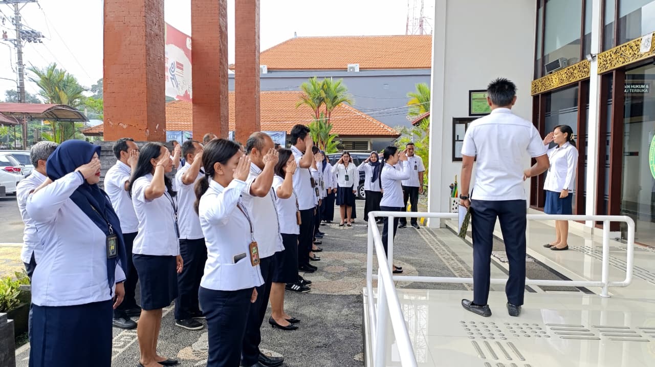 Bertempat di halaman kantor Pengadilan Negeri Semarapura telah dilaksanakan Apel Pagi, sebagai Pembina Apel adalah Hakim Pengadilan Negeri Semarapura Ibu Ni Komang Wijiatmawati, S.H.,M.Kn., sebagai Petugas Apel dari bagian Perencanaan Teknologi Informasi dan Pelaporan, apel diikuti oleh seluruh Hakim dan Aparatur Pengadilan Negeri Semarapura. Dalam amanatnya pembina apel menyampaikan agar selalu menjaga disiplin, mematuhi PERMA Nomor 7,8,9 Tahun 2016, serta selalu menerapkan Delapan Nilai Utama Mahkamah Agung RI, dan tetap berpedoman kepada Core Value ASN BERAKHLAK.