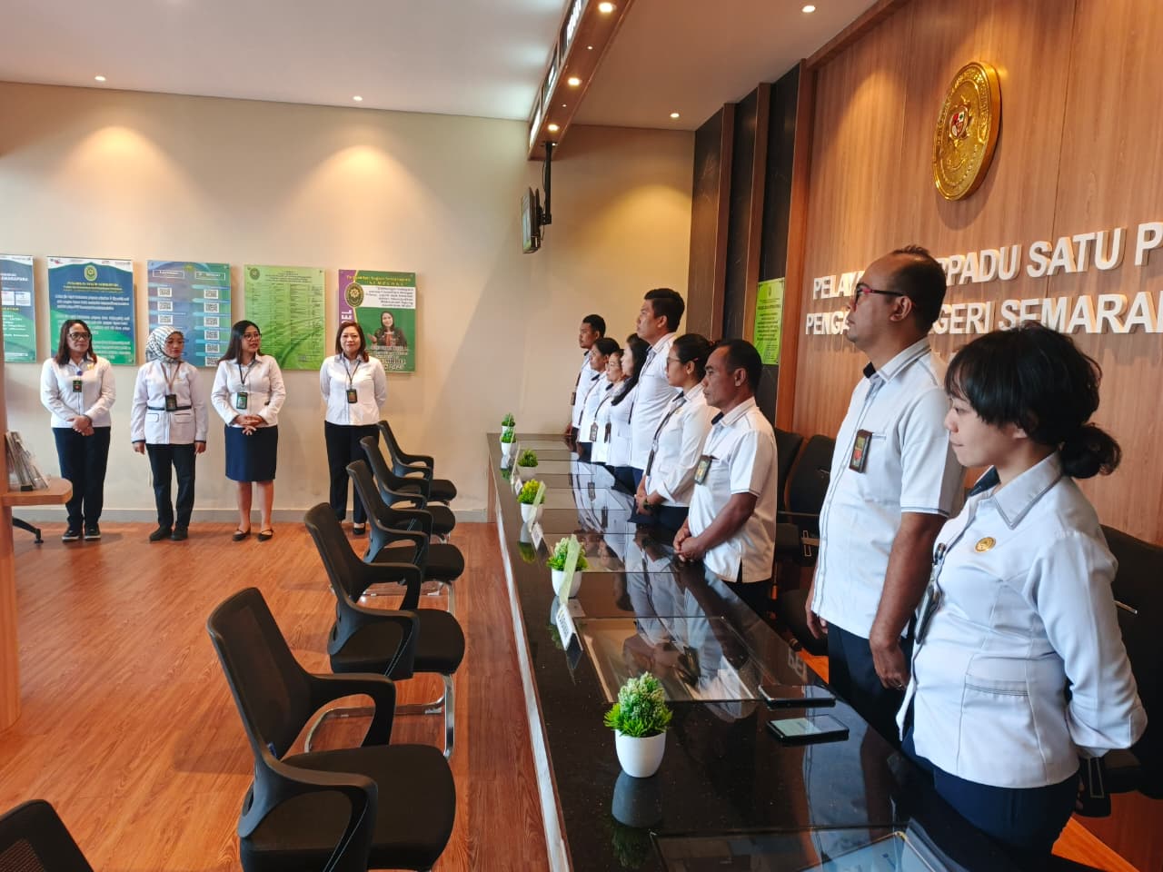 Bertempat di Ruang PTSP Pengadilan Negeri Semarapura, telah dilaksanakan Apel Petugas PTSP. Apel diikuti oleh Atasan Pengelola, Pengelola PTSP, Penanggung Jawab PTSP dan Petugas PTSP. Dalam briefing disampaikan oleh Ibu Ketua selaku Atasan Pengelola, mengingatkan untuk selalu memberikan pelayanan yang terbaik pada masyarakat. Ibu Hakim Pengawas menyampaikan agar menyiapkan hal-hal yang dibutuhkan untuk kelancaran dalam pengawasan di semester II.