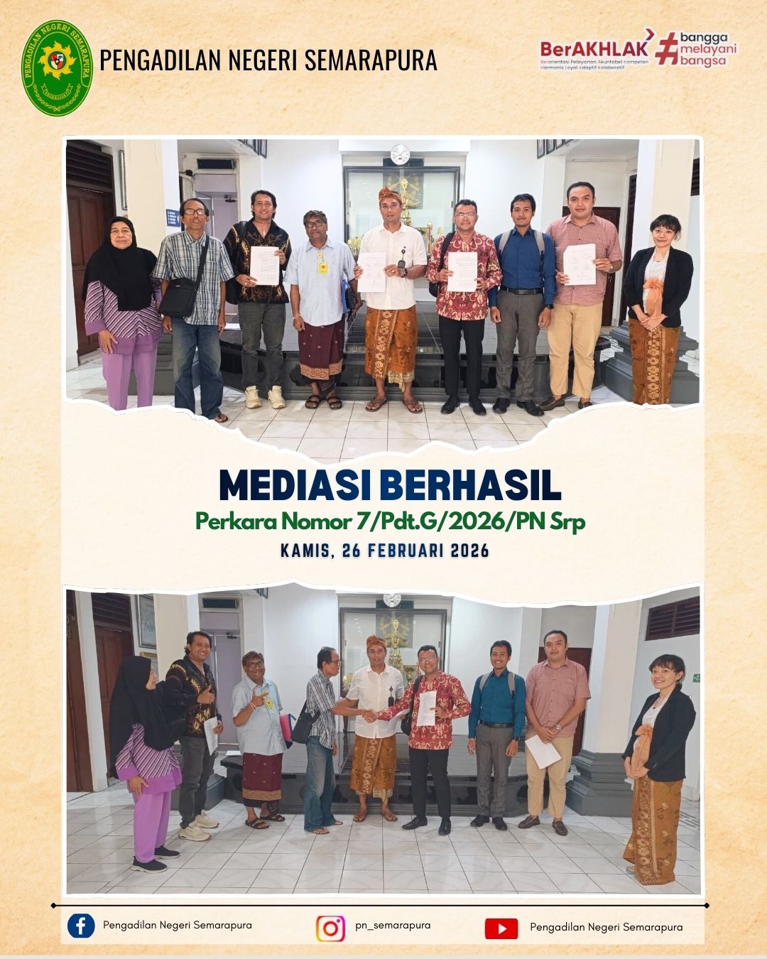 Mediasi Berhasil Perkara Nomor 7/Pdt.G/2026/PN Srp dengan Hakim Mediator Bapak Anak Agung Putra Wiratjaya, S.H., M.H.