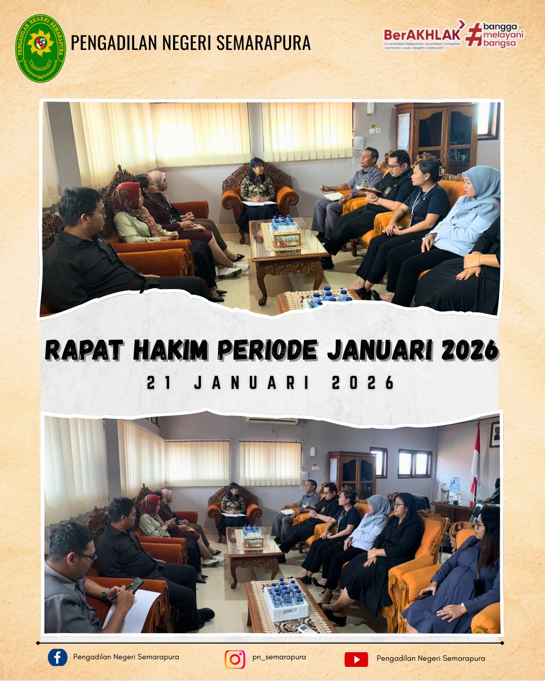 Ketua Pengadilan Negeri Semarapura Ibu Ratih Kusuma Wardhani, S.H.,M.H., beserta seluruh Hakim Pengadilan Negeri Semarapura, bertempat di Ruang Ketua Pengadilan Negeri Semarapura, melaksanakan kegiatan Rapat Hakim Periode Januari 2026.