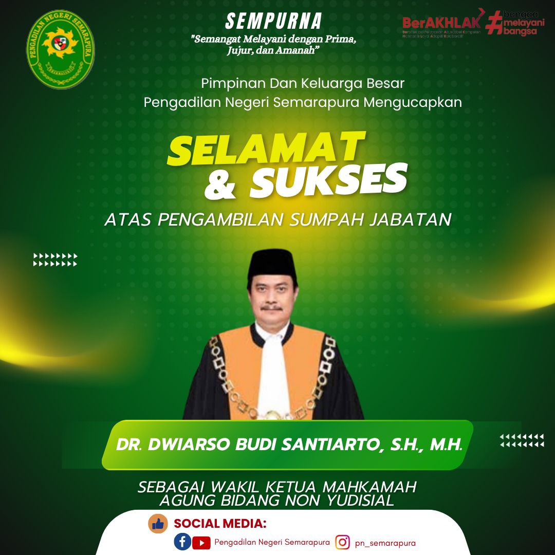 Pimpinan dan Keluarga Besar Pengadilan Negeri Semarapura mengucapkan Selamat dan Sukses