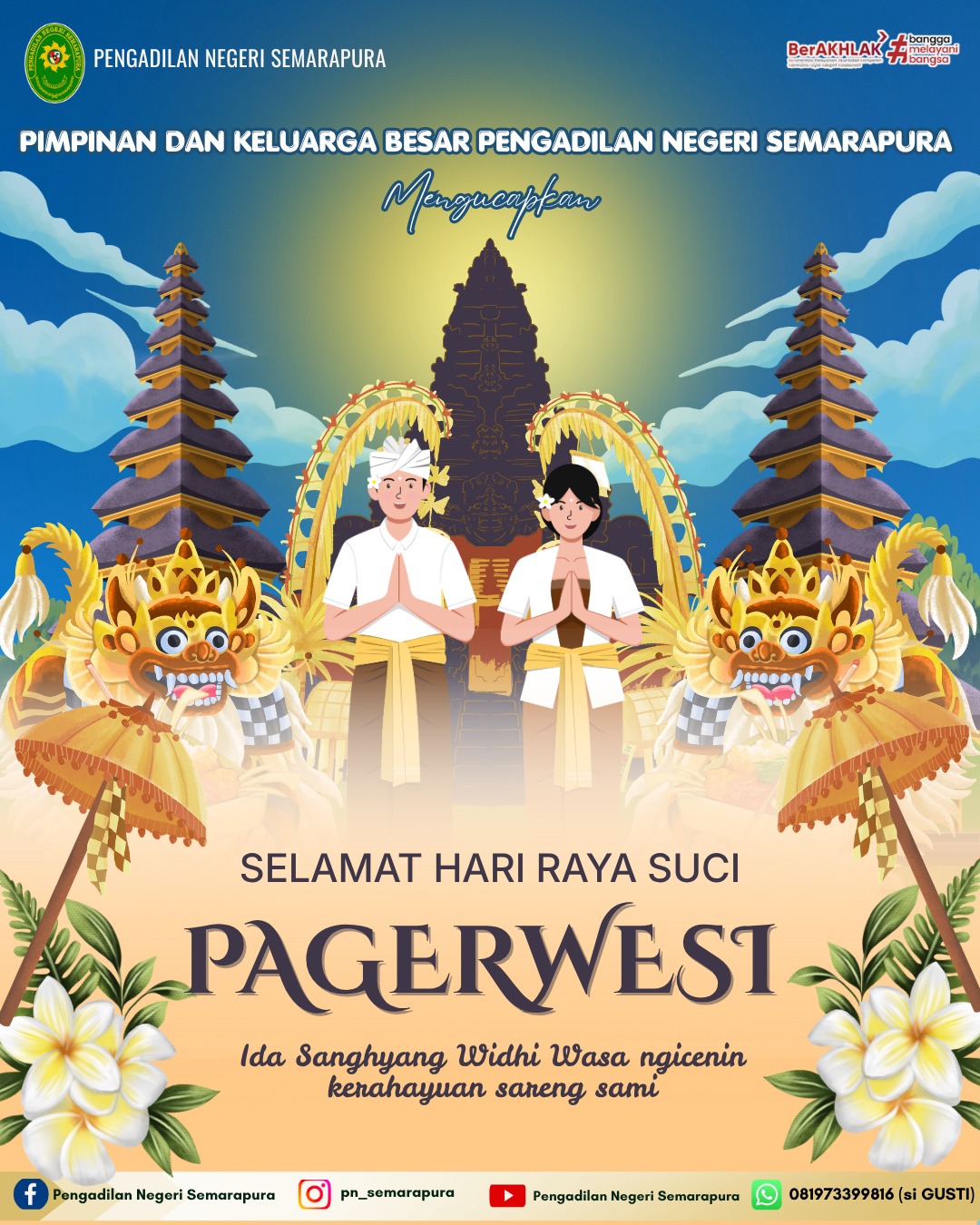 Pimpinan dan Keluarga Besar Pengadilan Negeri Semarapura mengucapkan Selamat Hari Raya Suci Pagerwesi, Dumogi Ida Sang Hyang Widhi Wasa Ngicenin Kerahayuan Sareng Sami.