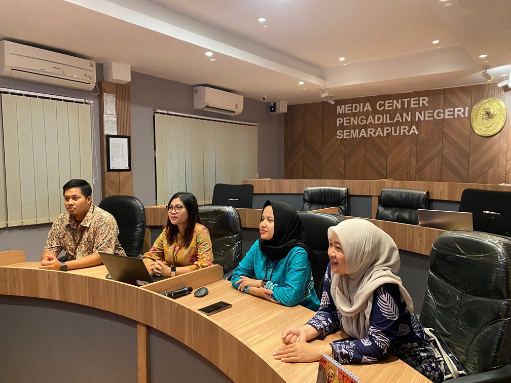 Plh. Ketua Pengadilan Negeri Semarapura Ibu Putu Mas Ayu Cendana Wangi, S.H.,M.H., beserta para Hakim Pengadilan Negeri Semarapura mengikuti Seminar Nasional Program Pertukaran Pengetahuan YSEALI dengan topik “Sexual Harassment at Workplace 101 & How American Court Handle Harassment and Bullying in the Workplace” yang diselenggarakan oleh Young Southeast Asian Leaders Initiative (YSEALI) Professional Fellows Program (PFP) secara daring diruang media center Pengadilan Negeri semarapura.