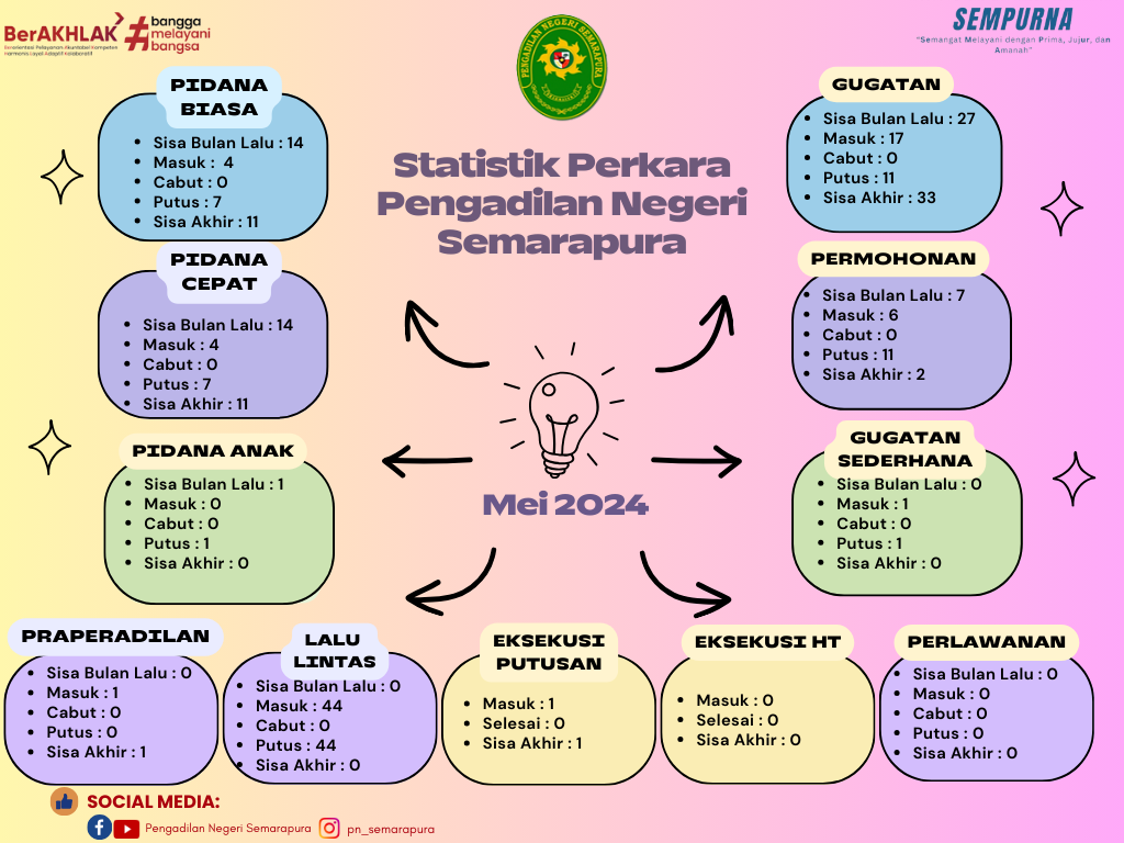 Statistik Perkara Bulan Mei 2024 Selasa, 11 Juni 2024 Bagikan : Statistik Perkara Pengadilan Negeri Semarapura pada Bulan Mei Tahun 2024. Lihat Berita Lainnya