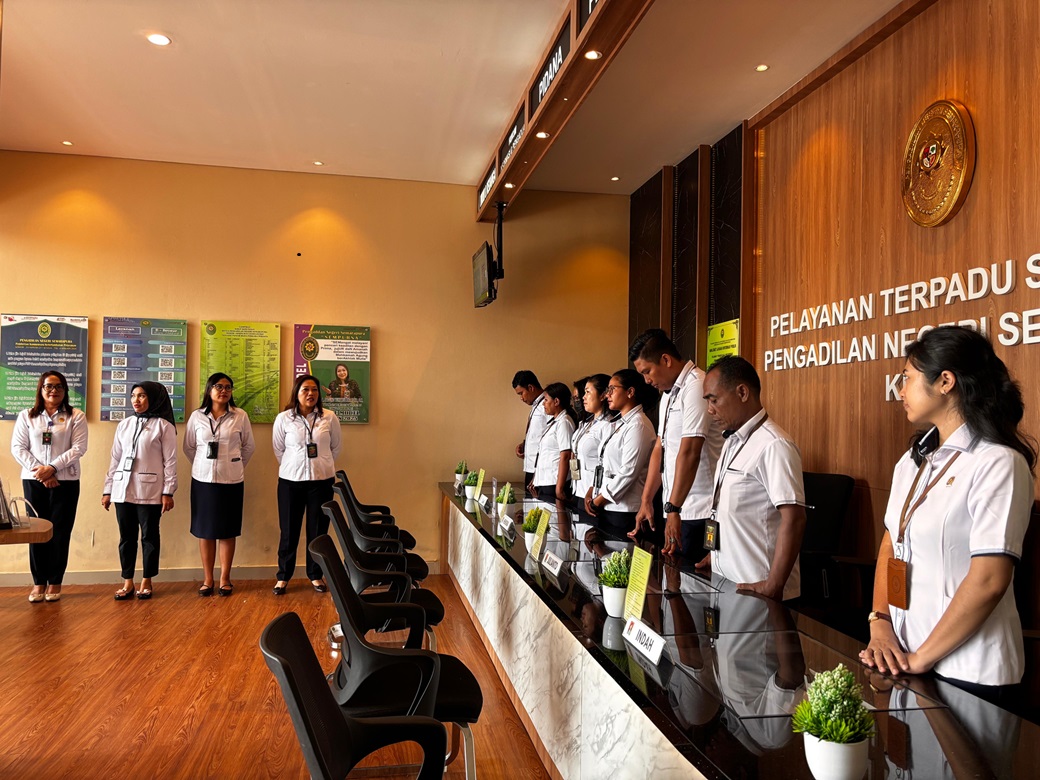 Bertempat di Ruang PTSP Pengadilan Negeri Semarapura, telah dilaksanakan Apel Petugas PTSP. Apel diikuti oleh Atasan Pengelola, Pengelola PTSP, Penanggung Jawab PTSP dan Petugas PTSP. Dalam briefing disampaikan oleh Ibu Ketua selaku Atasan Pengelola, mengingatkan untuk selalu mempersiapkan pelayanan yang diberikan, baik sebelum pelayanan, saat pelayanan dan sesudah pelayanan. Ibu Hakim Pengawas menyampaikan agar menyiapkan formulir yang dibutuhkan untuk kelancaran dalam memberikan pelayanan yang dibutuhkan.